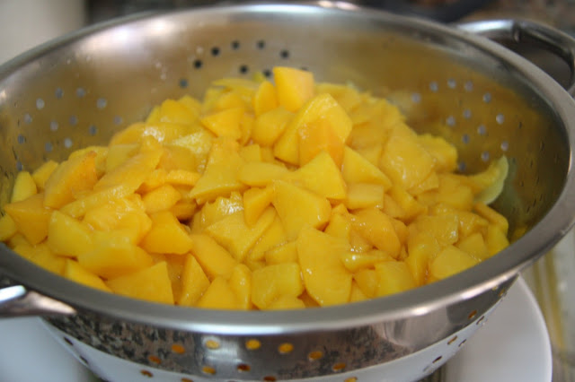 Un cop pelats, talleu els préssecs a trossos petits i poseu-los a bullir amb una mica d’aigua (just la necessària per a cobrir-los) durant 10 minuts. Escorreu-los i passeu-los per la batedora.