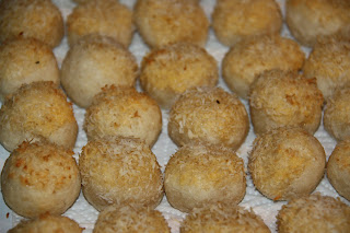 De crocant: feu boles i passeu-les per rovell d’ou batut i després arrebosseu amb crocant d’ametlla.