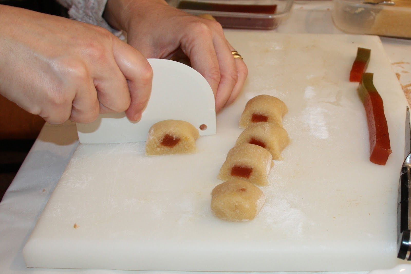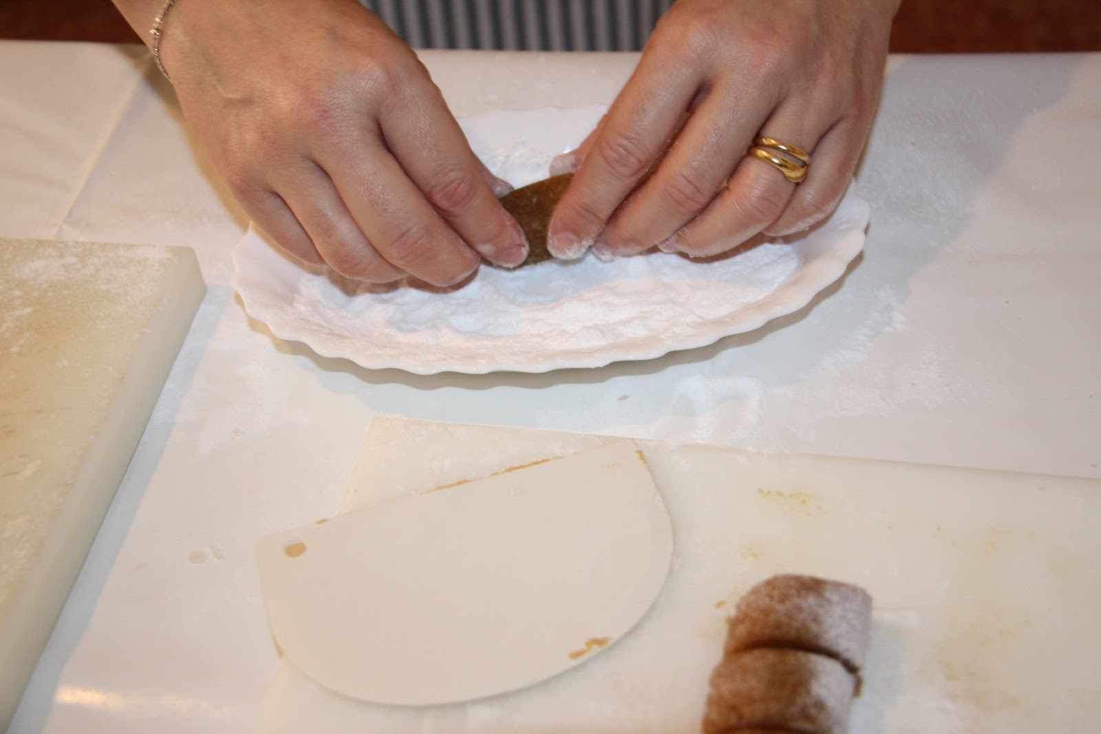 De codonyat: fer un cilindre amb la massa, obriu pel mig amb l’ajuda d’un ganivet i farciu amb el codonyat. Tanqueu bé el cilindre i talleu en porcions. *La propera setmana publicarem la recepta de codonyat.