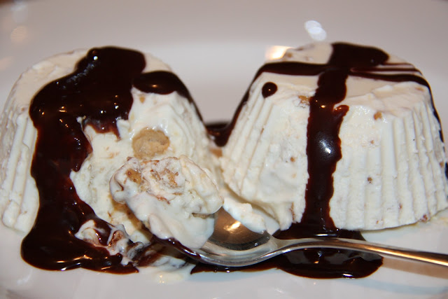 Afegiu la mata muntada delicadament. Trinxeu el torró i afegiu-lo a la mescla. Aboqueu en motlles i guardeu al congelador. Al moment de servir ho podeu decorar amb una mica de xocolata calenta al damunt.