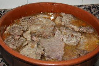 carn. Afegiu aigua fins cobrir la carn.