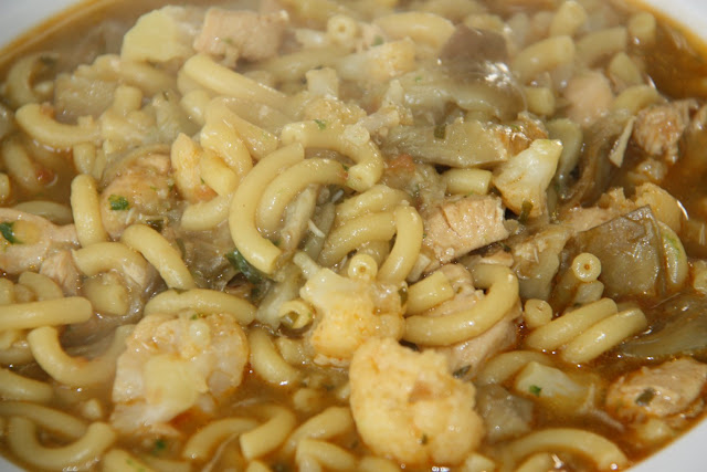 Fideus a la cassola amb pollastre, carxofa i bròquil