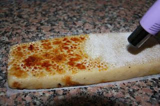 Passat aquest temps, poseu una capa de sucre al damunt i amb un cremador, cremeu el sucre fns que estigui caramelitzat. Deixeu refredar i feu el mateix amb l’altra cara.