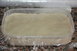Poseu una part del massapà en un motlle forrat amb paper film o de forn. Repartiu pel damunt les fruites confitades i tapeu amb més massapà. Cobriu amb el paper film i apreteu bé.