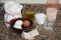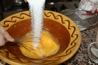 Mentrestant, bateu els ous amb el sucre, afegiu l’oli, la llet, el xorret d’anís i el grapadet de matafaluga en gra. Podeu afegir una mica de ratlladura de taronja, a la recepta no ho posa, però ara que és temps de taronges, cal aprofitar-ho, la pell ratllada li dona un sabor molt agradable. Quan ho tingueu tot barrejat, afegiu la llevat que ja haurà pujat una mica i ho treballeu. Afegiu la farina a poc a poc. Pasteu bé, si ho podeu fer amb una pastadora elèctrica, millor.