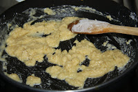 A la mateixa paella poseu la mantega i quan s’hagi desfet afegiu la farina. Doneu-li unes voltes fins que agafi color dauradet i afegiu la llet. Remeneu bé per a que no es facin grumolls. Afegiu la nou moscada i la sal. Deixeu coure durant uns 10 minuts sense parar de remenar.