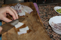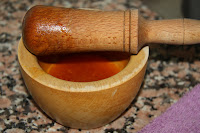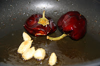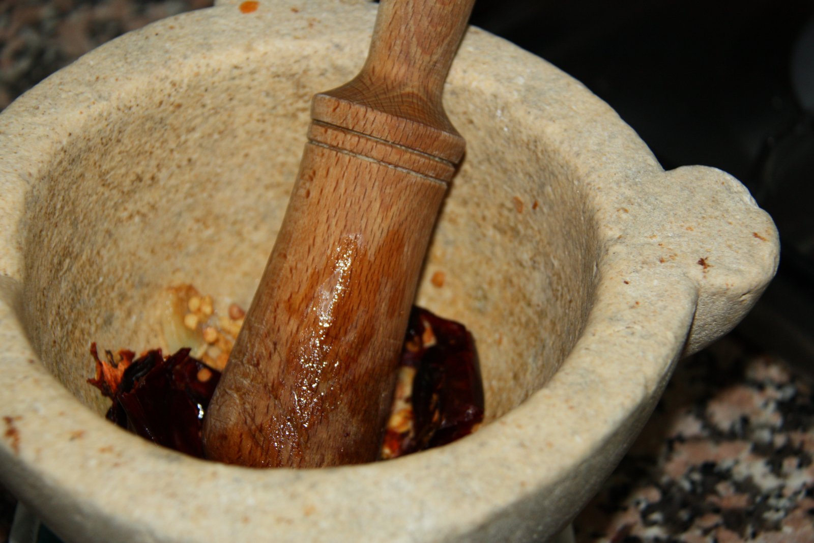 Poseu una olla o cassola alta al foc amb una mica d’oli. Fregiu els alls i les nyores i les reserveu al morter fer picar-ho.