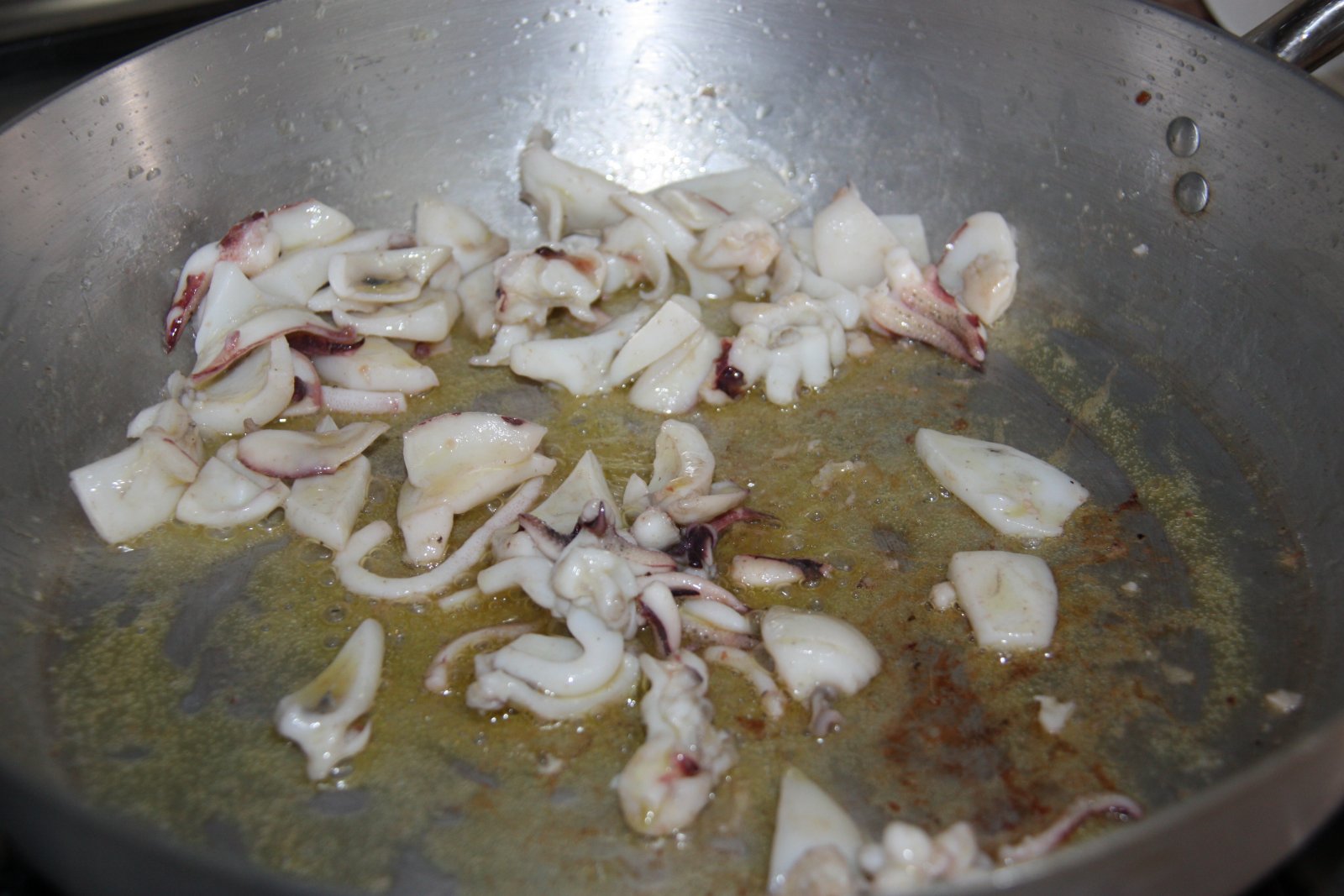 Talleu a trossos les sípies i saleu-les. Poseu una cassola al foc amb una mica d’oli d’oliva i salteu les sípies fins que estiguin rosses. Treieu de la cassola i reserveu.