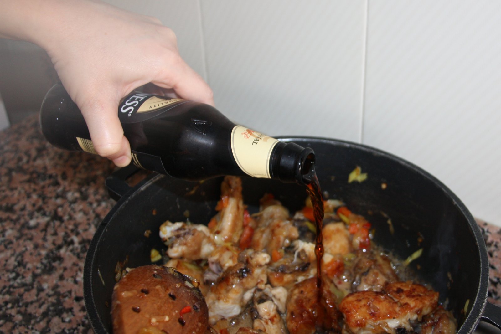 Pollastre a la cervesa negra