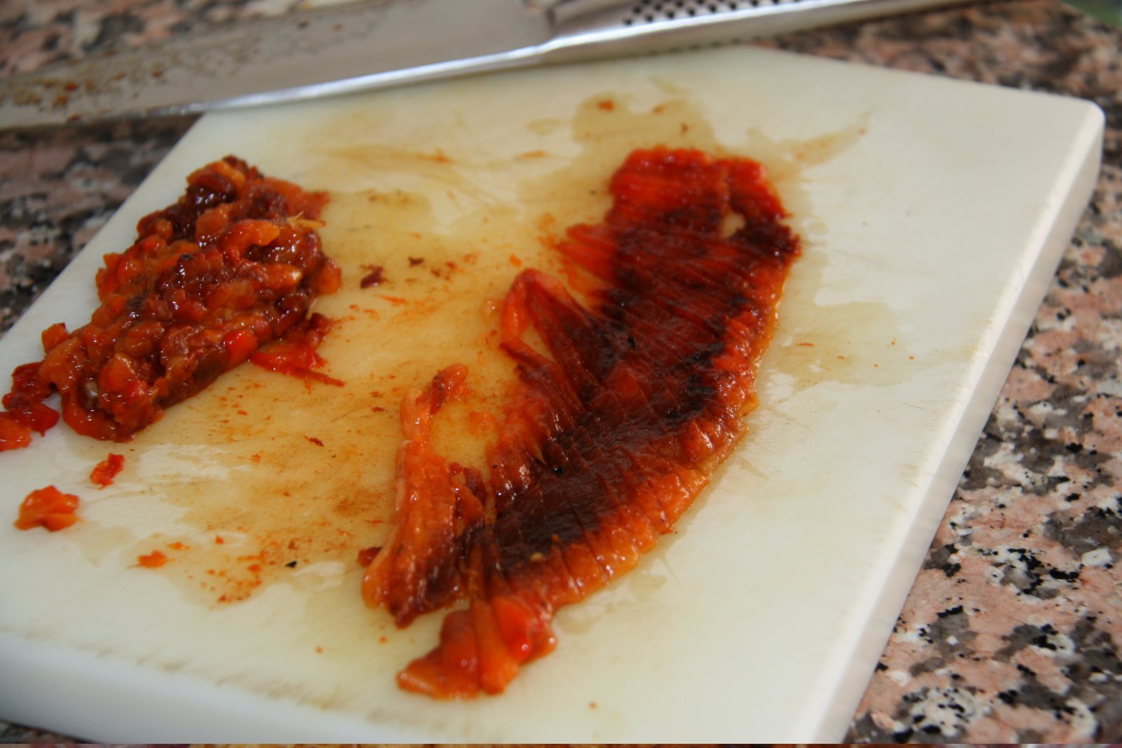 He vist diferents receptes de melmelada de primentó escalivat, on l’elaboració sempre és la mateixa, la única cosa que canvia és la quantitat de sucre. Jo en poso poc, crec que amb aquesta quantitat és suficient.