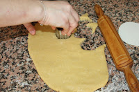 Esteneu la massa amb un corró i amb un motlle aneu fent les coquetes. Poseu-les en una llauna i pinteu amb ou batut.