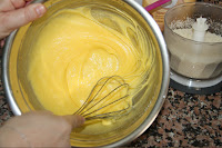 Bateu els ous i afegiu el sucre. Barregeu bé i afegiu el sagí en textura pomada i la pell de llimona ratllada. Mescleu bé, incorporeu l’ametlla i després la farina, on haurem barrejat els paperets de gasosa.