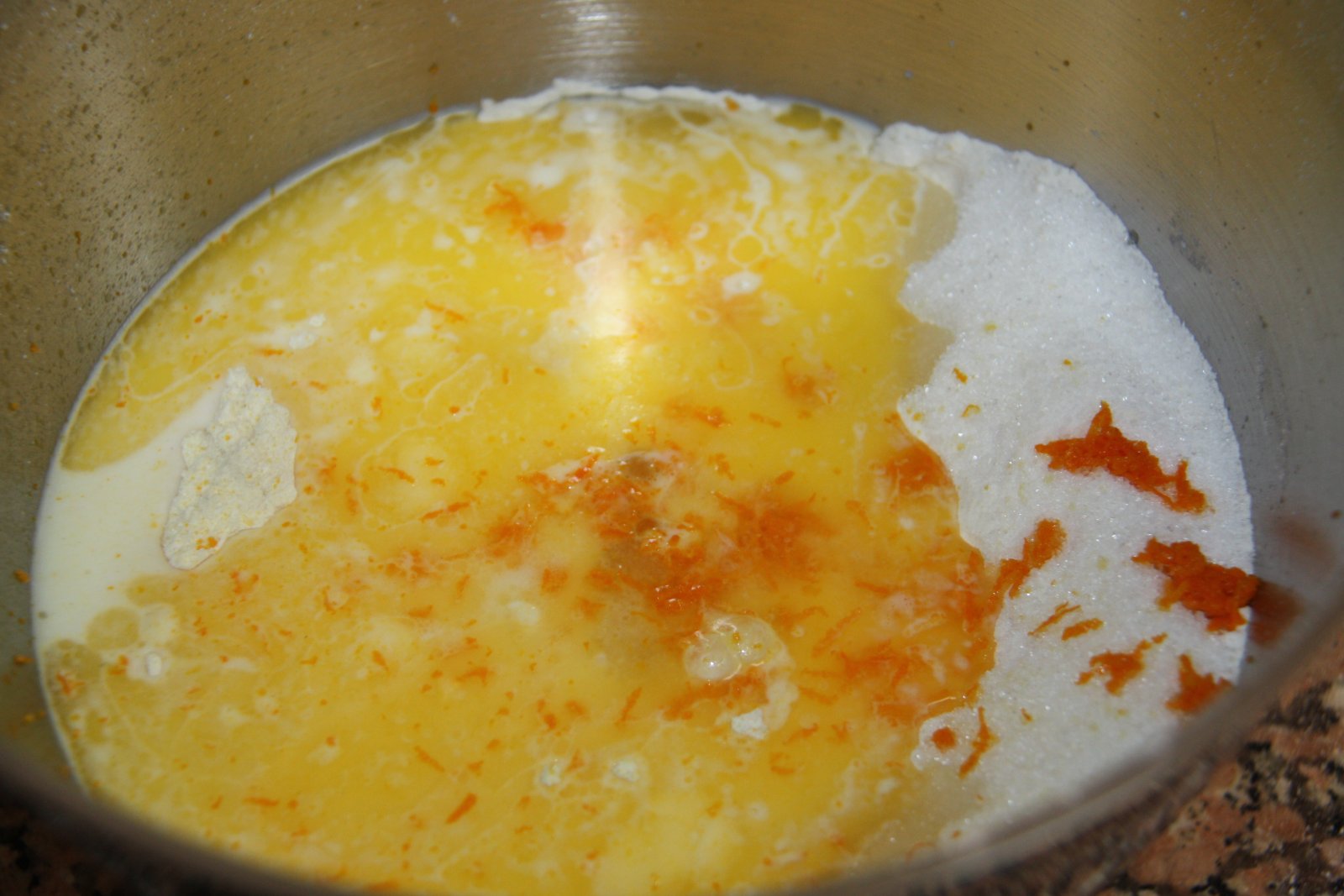 En un bol poseu la farina en forma de cercle, fent un forat al mig on posareu els ous, la mantega en textura pomada, el sucre, la llet, la pell de taronja, l’aigua de tarongina i la llevadura espumada.