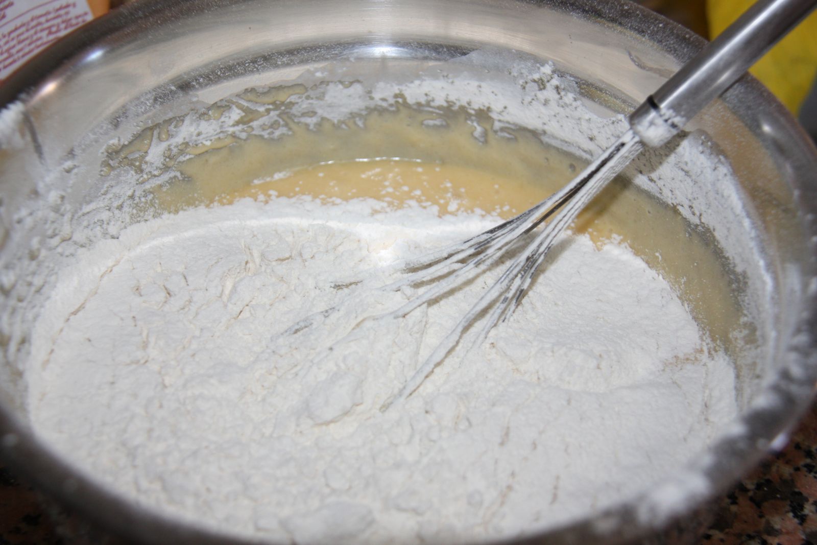 Bateu els rovells amb el sucre, afegiu l’oli de girasol, el iogurt, la pell de llimona ratllada i la farina (on haureu barrejat la llevadura).