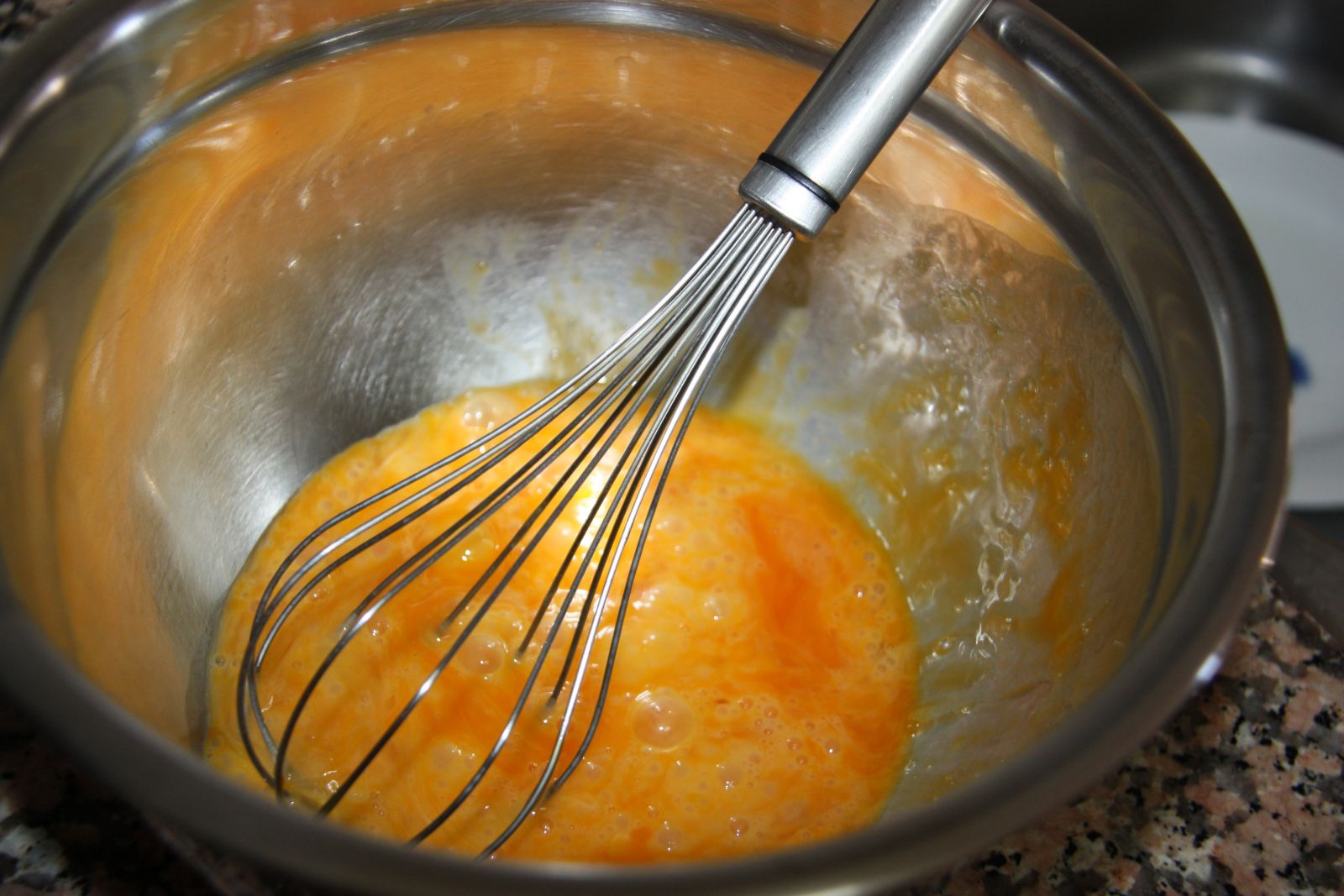 Munteu les clares d’ou a punt de neu i les incorporeu a la massa poc a poc.