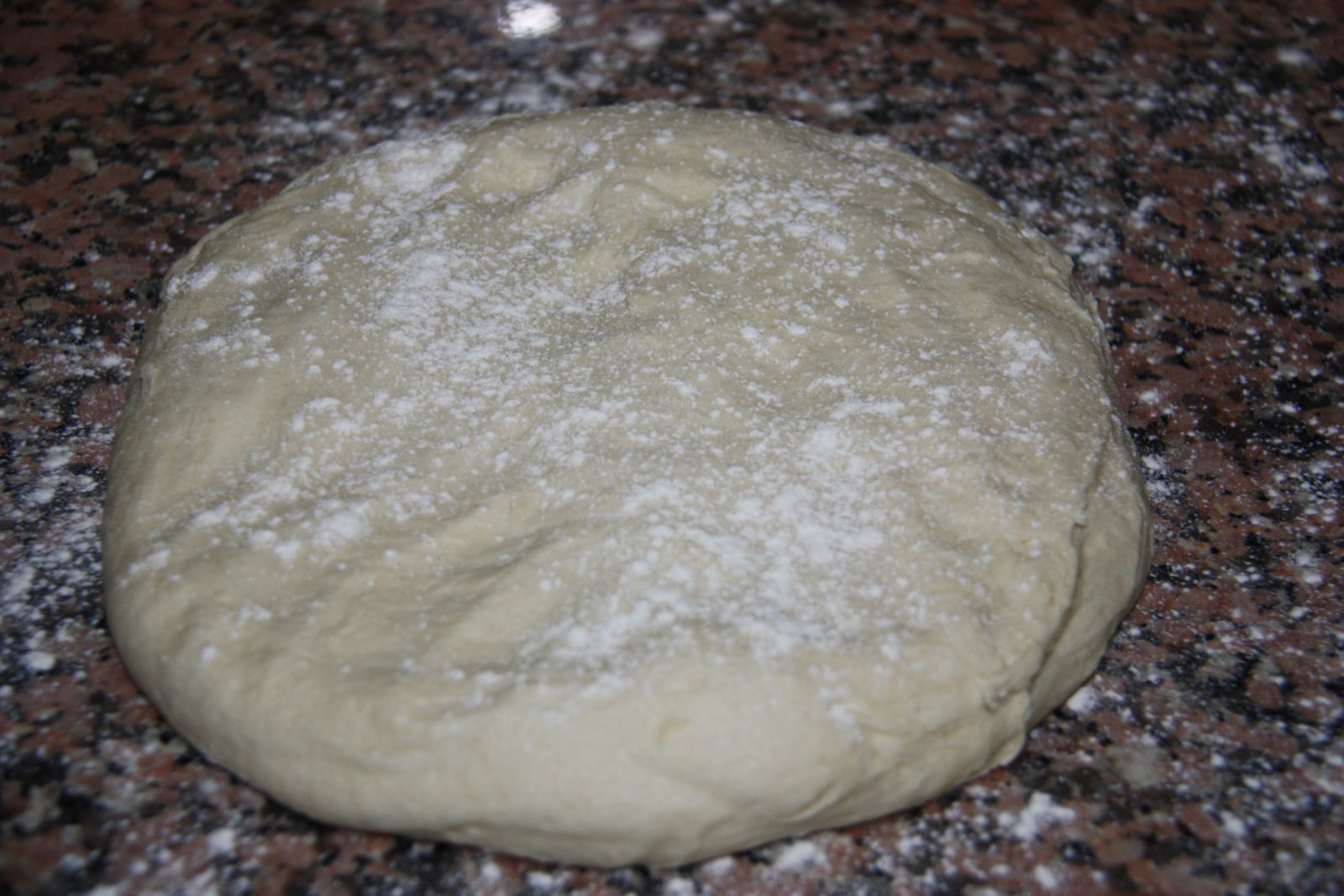 Disoleu la llevadura amb una mica d’aigua. Barregeu la resta de l’aigua amb l’oli i afegiu el llevat. Incorporeu la farina i la sal. Amasseu bé fins aconseguir una massa fina. Feu una bola i poseu-la en un recipient que haureu untat amb una mica d’oli per a que no s’enganxi. Tapeu amb film transparent i deixeu reposar en un lloc càlid durant 30 minuts.