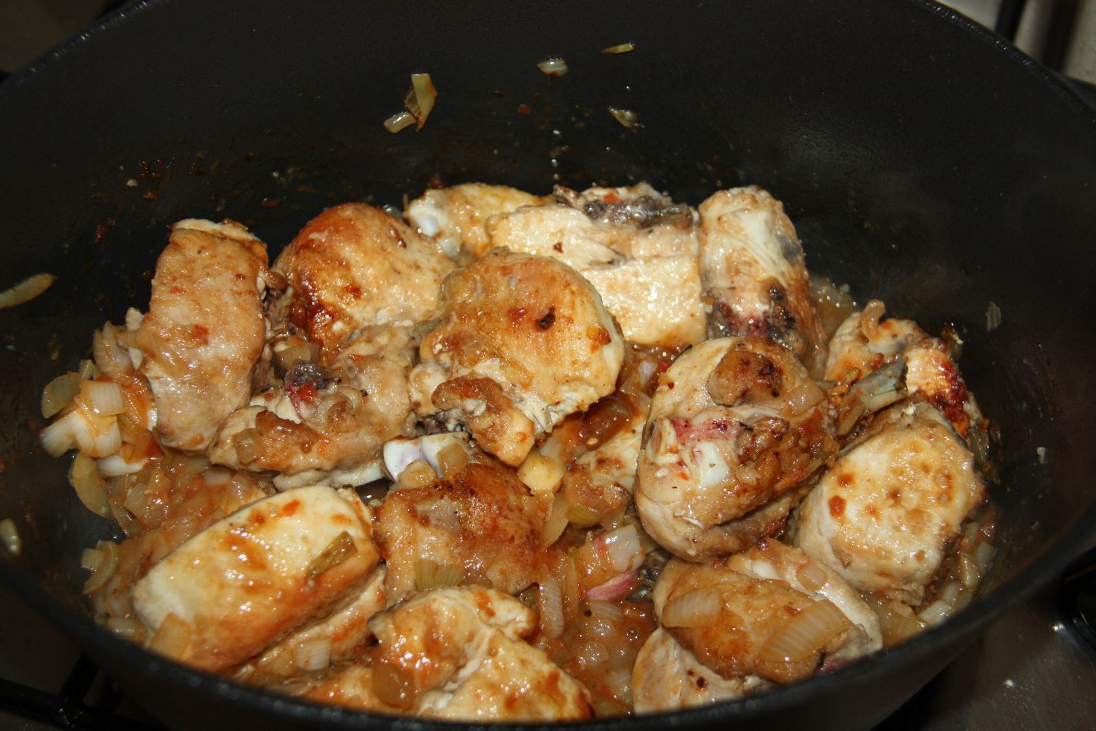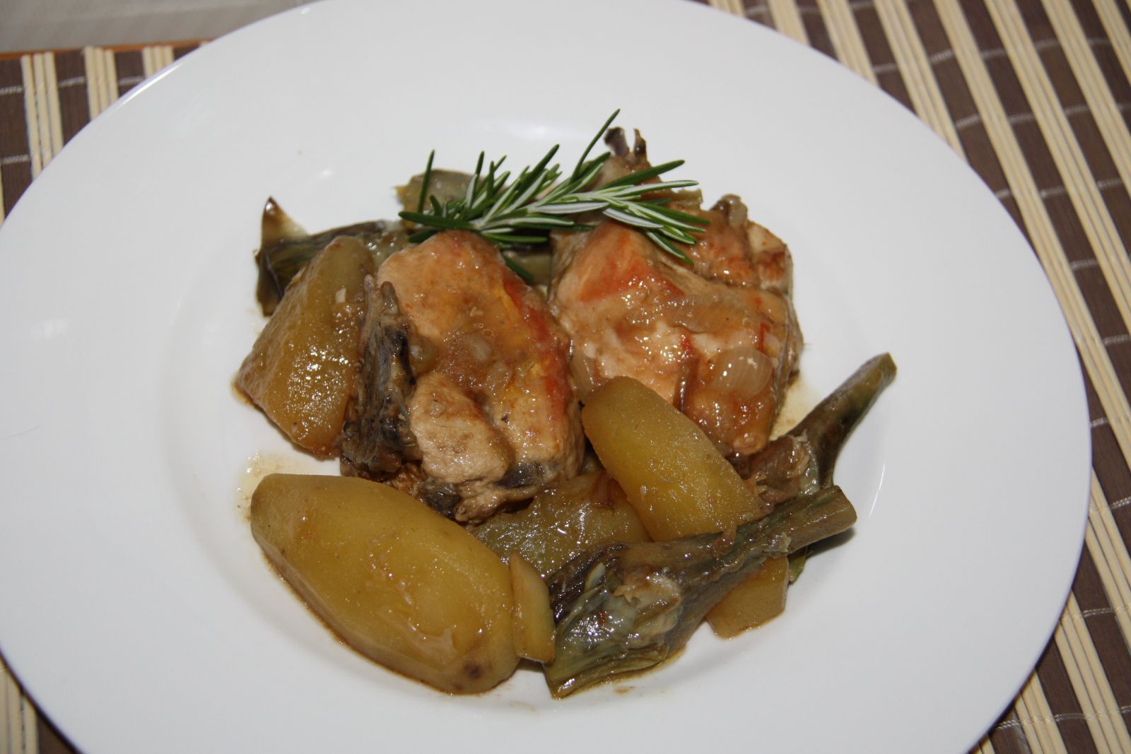 Cassola de pollastre amb carxofes i patates