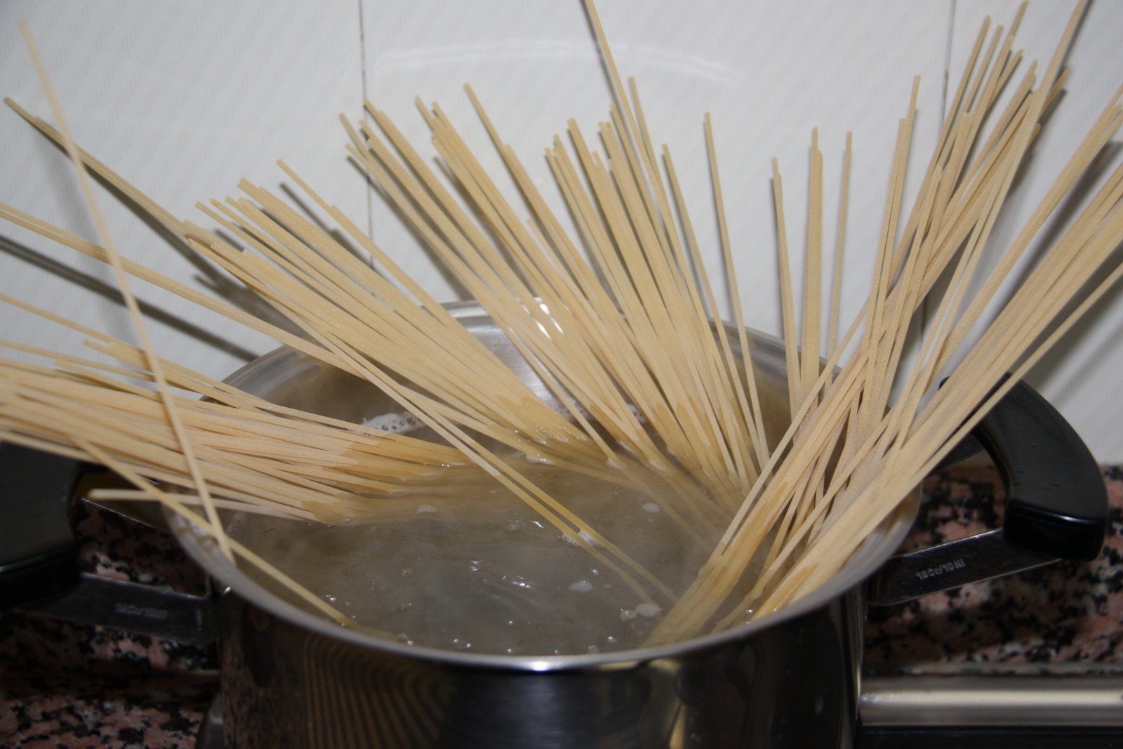 Avui hem preparat uns espaguettis italians que ens van regalar, d’aquells que són tan llargs que al primer moment es queden fora de l’olla.