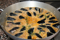 Prepareu una picada amb l’altre gra d’all i el julivert i l’afegiu a l’arròs. Poseu els musclos (en aquesta ocasió els hem posat per a que s’obrin directament a la paella perquè eren ben frescos. Si ho preferiu podeu obrir-los al vapor i afegir-los cap al final de la cocció).