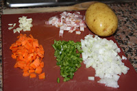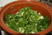 Mentre s’acaba de fer el sofregit, netegem les bledes i les tallem a trossos petits. Fem el mateix amb la patata.