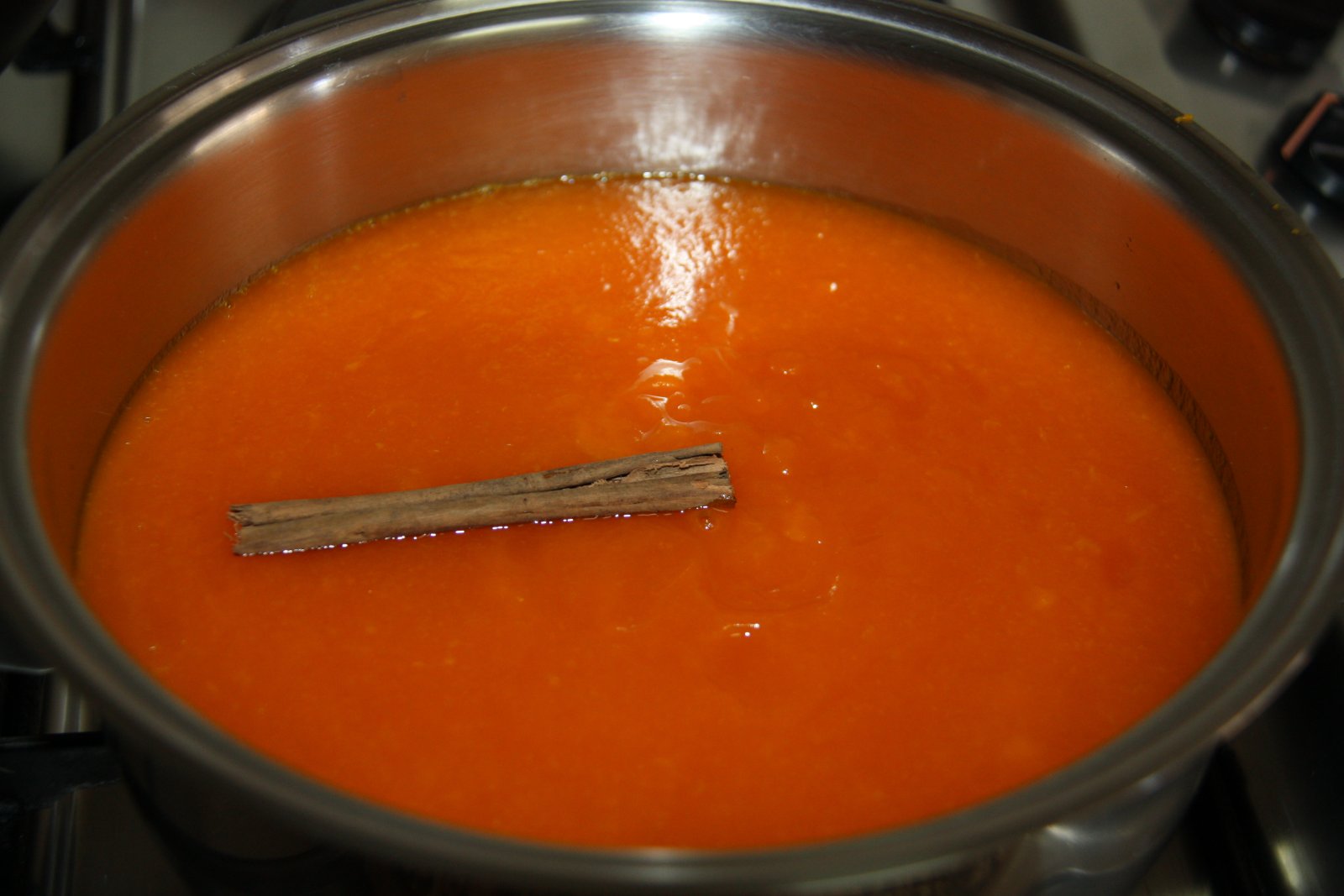 Afegiu la branca de canyella i ho deixeu coure a foc lent fins que agafi la textura de melmelada, uns 30 minuts.