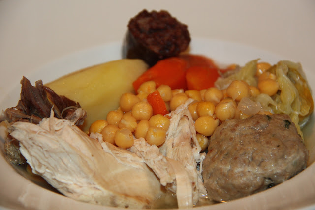 Podeu fer una mica de sopa amb el brou, que us servirà de primer plat i servir la carn amb els cigrons i les verdures de segon.